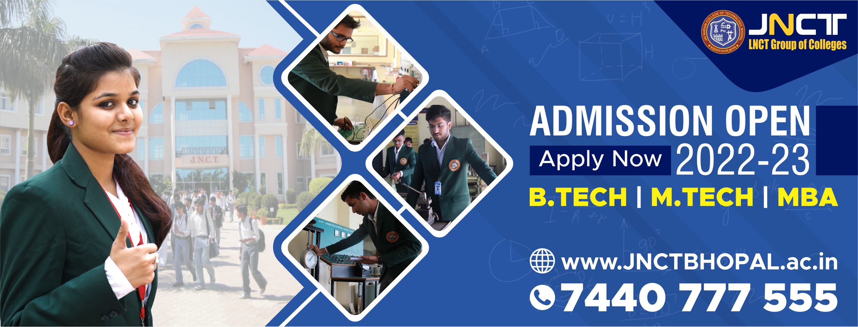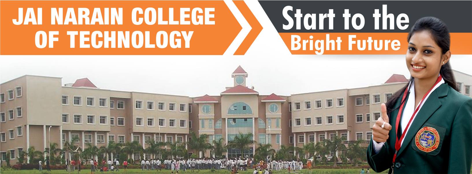 Jai Narain College of Technology (JNCT), Bhopal is considered to be unique in engineering education as it is firmly rooted in local soil and capable of articulating the Indian ethos. In the contemporary era, where Globalization and liberalization are the buzzwords, the college without disturbing the said roots, endeavors to meet the engineering challenges, sentiments, and opportunities that are going to present themselves on account of the new economic order. This translates into the symbiotic affiliation with the corporate magnets, equipping the students with technical acumen to become tomorrow’s leaders.